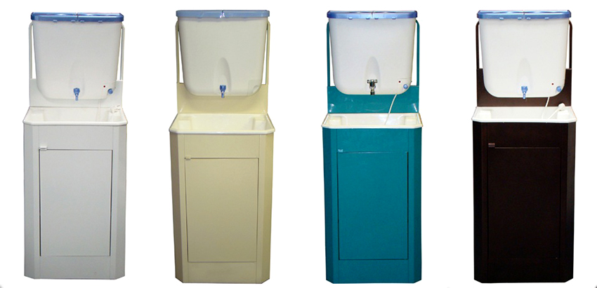 El volumen del depósito de agua, según el modelo, puede ser de 10 a 20 litros. Hay disponibles productos con un elemento calentador de agua. Por lo general, se usan al aire libre: se montan en un marco hecho de un perfil de metal, al que se une un fregadero. Puede instalar la estructura en el jardín o huerto.