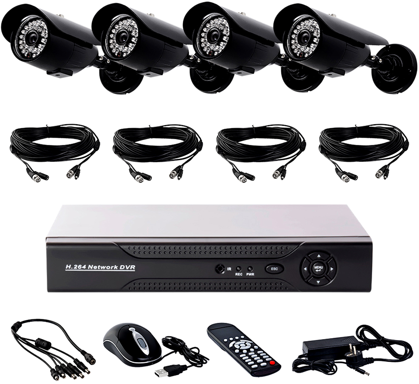 Kits listos para usar de sistema de videovigilancia para una casa privada.