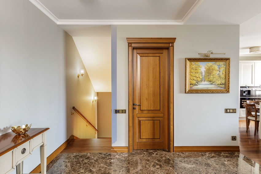 También debe considerar el tipo de habitación. La mejor opción para las puertas de entrada son los tablones de madera o las molduras metálicas especialmente tratadas. Las aberturas a la cocina y al baño también se pueden decorar con azulejos de cerámica, pero esta opción se verá armoniosa si la habitación está alicatada con el mismo material.