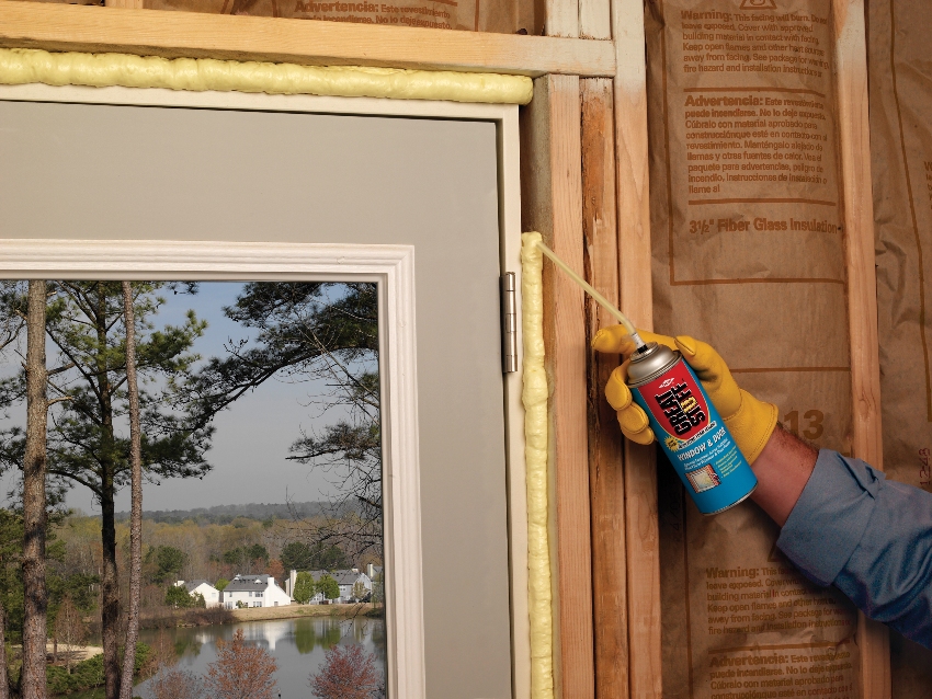 Para fijar el aislamiento en la superficie interior de la hoja de la puerta, se utilizan con mayor frecuencia clavos líquidos. Los huecos restantes se pueden rellenar con espuma de construcción normal. Después de terminar el trabajo, debe ensamblar la puerta y volver a colocarla en las bisagras. Este tipo de aislamiento es adecuado para nuevas estructuras que se fijan a la base con tornillos.