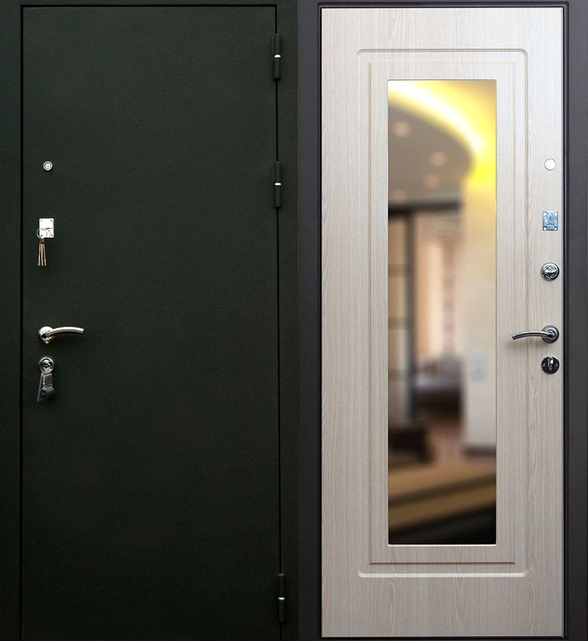 Puertas de acero para un apartamento con espejo: defectos de diseño.