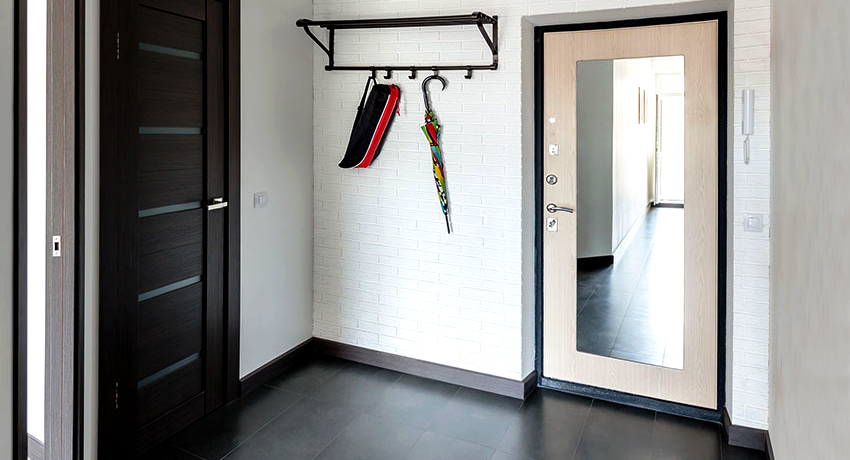 Puerta de entrada con espejo en el interior: métodos de fijación.