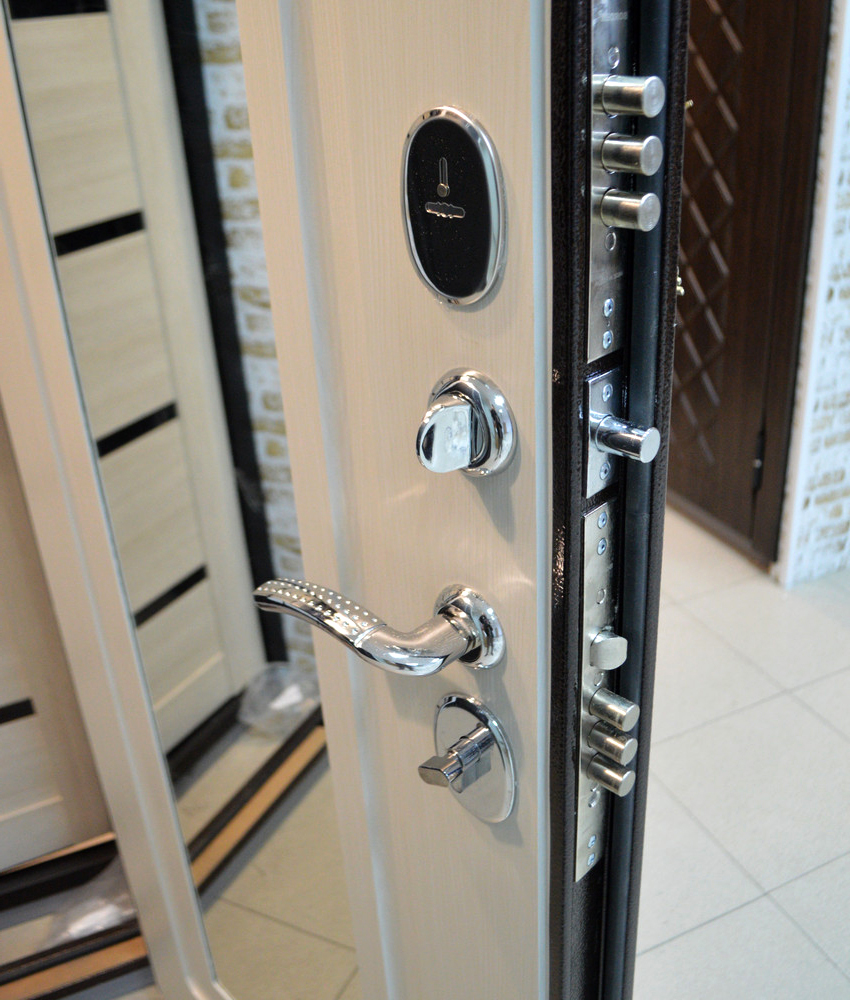 Vale la pena discutir de antemano las peculiaridades de la instalación de la mirilla: su ubicación o su ausencia total con el reemplazo de un sistema de videovigilancia. Además, es necesario resolver el problema del número de cerraduras y pestillos, así como el mecanismo de su acción. Se puede instalar cualquier cerradura en la puerta, pero se da preferencia a los mecanismos confiables, ya que el acceso a ellos es difícil debido al inserto de espejo instalado. Puede elegir una cerradura oculta sin ojo de cerradura, para la cual la llave es un control remoto electrónico o una tarjeta magnética.