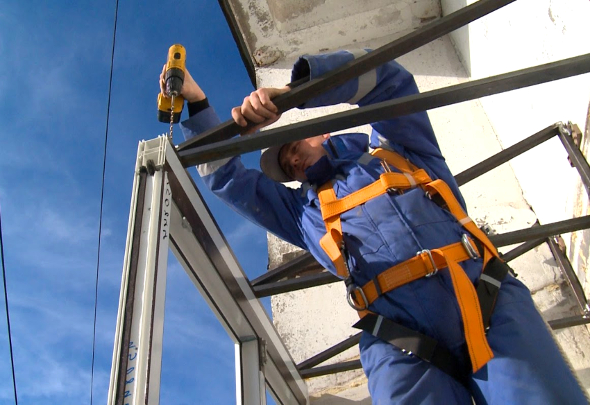 La estructura se fija desde abajo a la barandilla y desde arriba a la losa del techo mediante placas de anclaje. A continuación, se sellan las juntas de la estructura que linda con las barandillas, el techo y la pared con espuma de poliuretano. Los espacios están cubiertos con cinta de montaje para evitar la entrada de humedad y la condensación. Después de instalar el marco, el acristalamiento vuelve a su lugar y las hojas se cuelgan de las bisagras.