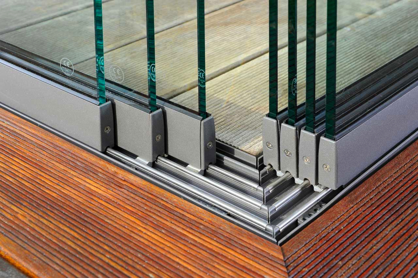 Debido al hecho de que la estructura sin marco no contiene marcos a los que se unen las gafas, el mecanismo para su apertura es importante. Aquí se utiliza un sistema deslizante o plegable. La primera opción está representada por puertas de vidrio que se mueven paralelas al marco a lo largo de guías de carril, proporcionando apertura y cierre de la apertura.
