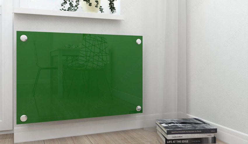 Las mamparas de vidrio se pueden montar en la pared o tener un soporte especial. Las pantallas acrílicas son especialmente populares hoy en día, que, debido a su bajo peso, se pueden colgar en un radiador de calefacción.A pesar de que esta es una opción económica para pantallas de vidrio, el vidrio acrílico se caracteriza por un alto rendimiento.