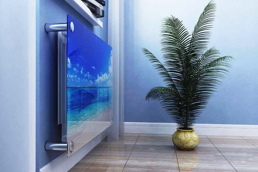 Los productos de vidrio, que se fabrican con una tecnología de curvado especial, pueden tener diferentes formas, colores y transparencias. Hay modelos con retroiluminación LED. Este diseño es una decoración inusual y sofisticada del interior, que se muestra claramente en fotos de pantallas en baterías de calefacción. El precio del producto depende del tamaño y grosor del vidrio, la opción de instalación y el método de dibujo. Entonces, el costo de 1 metro cuadrado. m. de una pantalla transparente será de 8.5 mil rublos, color y mate, de 11.5 mil rublos, con una imagen, de 13.5 mil rublos.