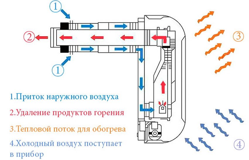 Una característica de este diseño es que la entrada de aire se realiza a través de un tubo telescópico horizontal especial, que se conecta al convector desde la parte posterior. Por lo tanto, el dispositivo no absorbe oxígeno dentro de la habitación y no necesita una chimenea tradicional.
