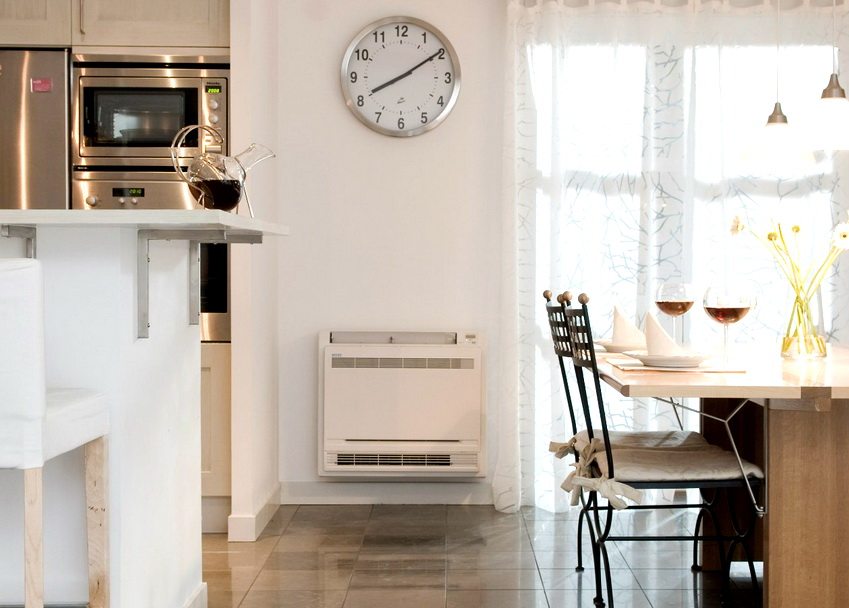 ¡Aviso util! Es importante no solo elegir un lugar, sino también asegurarse de que el modelo de convector que ha comprado se ajuste allí y no interfiera con los muebles o el movimiento libre por la habitación.