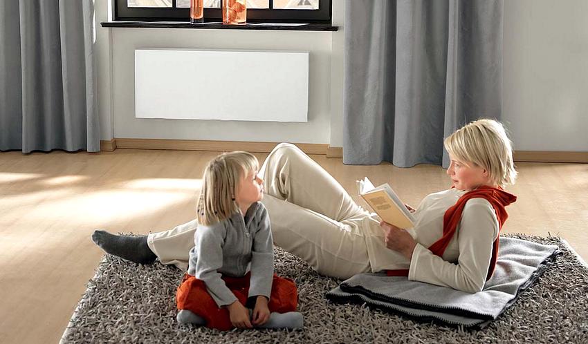 La unidad monolítica calienta la habitación mediante el efecto de convección. Durante esto, se produce un aumento gradual de la temperatura del aire en todos los puntos de la habitación. Cuando se calienta, el aire se expande, su densidad disminuye, por lo que aumenta. Un calentador monolítico primero calienta el espacio de aire opuesto a sí mismo, después de lo cual, debido al aumento de las corrientes calientes hacia arriba, se calienta cada capa posterior.