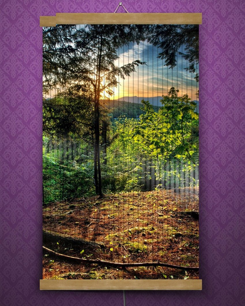 Usando calentadores de pared de ahorro de energía en forma de imagen en el interior, además de los beneficios económicos, puede lograr un excelente efecto estético.Colocándolo junto a un cómodo sofá o un sillón suave, puede calentarse simultáneamente en una noche fría y disfrutar del hermoso paisaje. Después de apagar el dispositivo, los objetos calentados por radiación infrarroja emitirán calor durante algún tiempo.