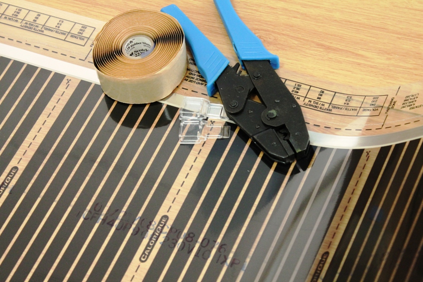 La película Caleo IR se vende completa con un kit de montaje: contactos y aislamiento de betún, algunos también incluyen cables de conexión