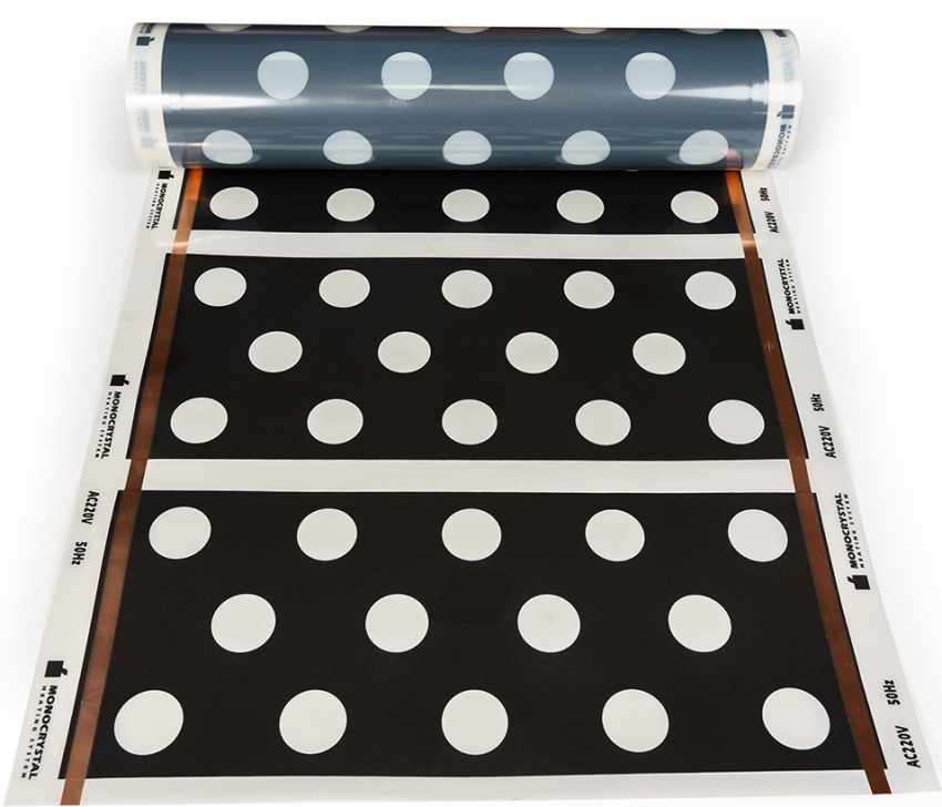 La vida útil de la película IR del fabricante Monocrystal es de 10 años. La alineación incluye las siguientes variedades: lineal, perforada, sólida. Las perforaciones están dispuestas para ser compatibles con el suelo de baldosas. La calefacción por suelo radiante de película para baldosas es muy popular entre los clientes.