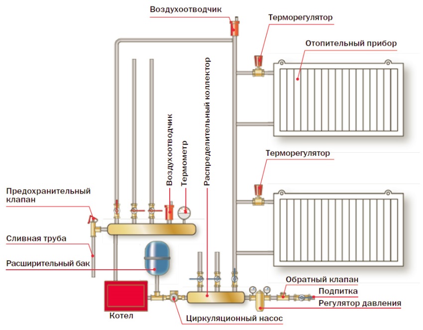 El principio de funcionamiento de las bombas de circulación elimina la necesidad de colocar la tubería en una cierta pendiente hacia la caldera. Y también es posible utilizar tuberías menos gruesas en la comunicación. Esto no solo ahorra espacio, sino que también reduce el costo de la estructura de calefacción en su conjunto.
