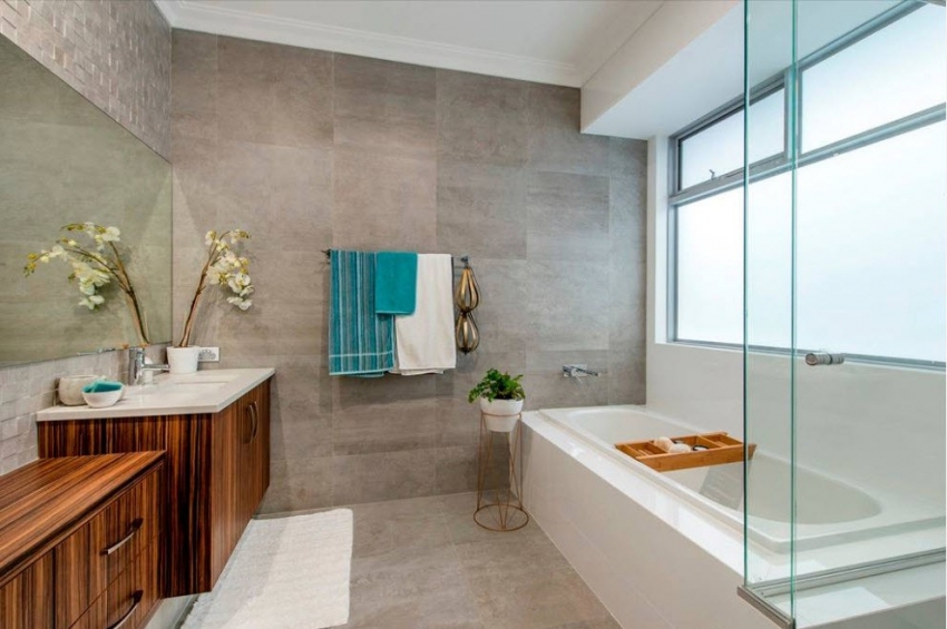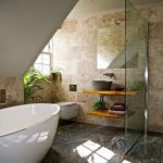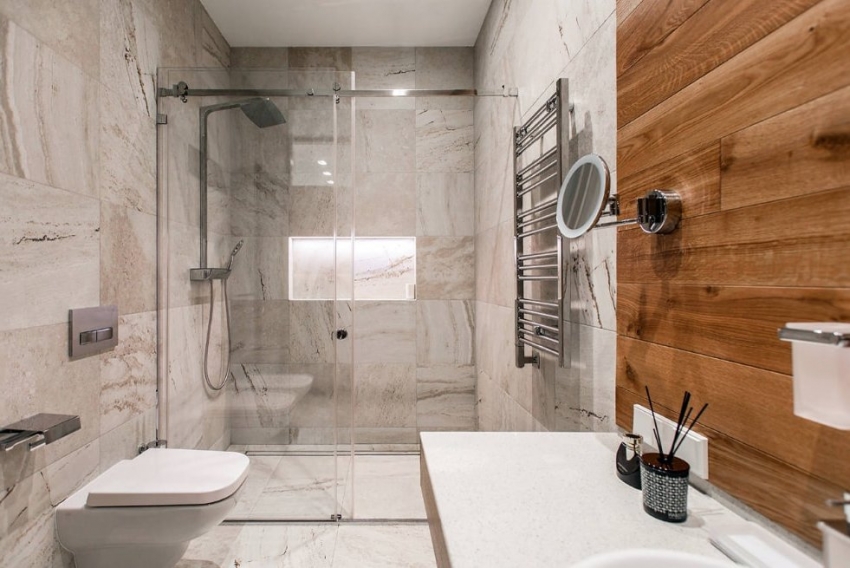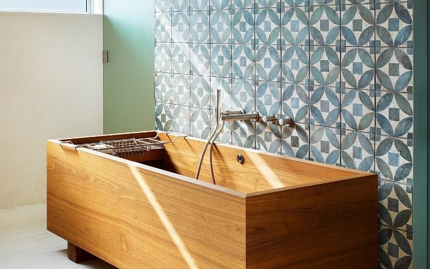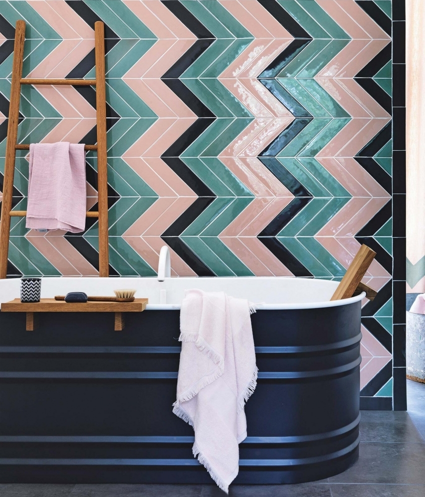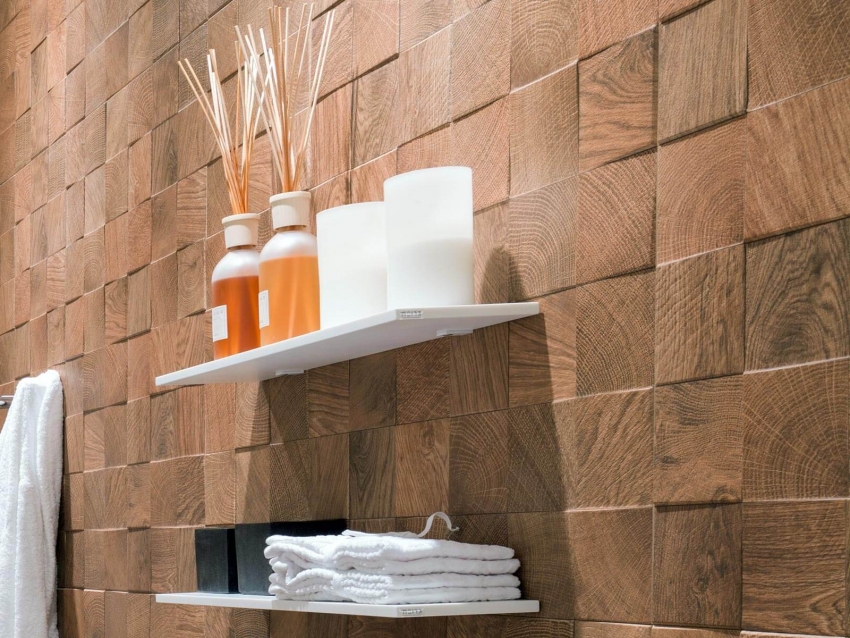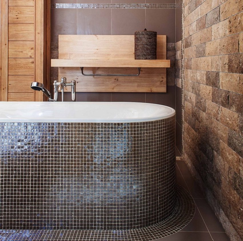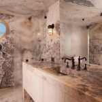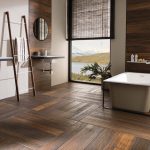 Una de las formas modernas de decorar un baño es utilizar azulejos con imitación de materiales naturales.