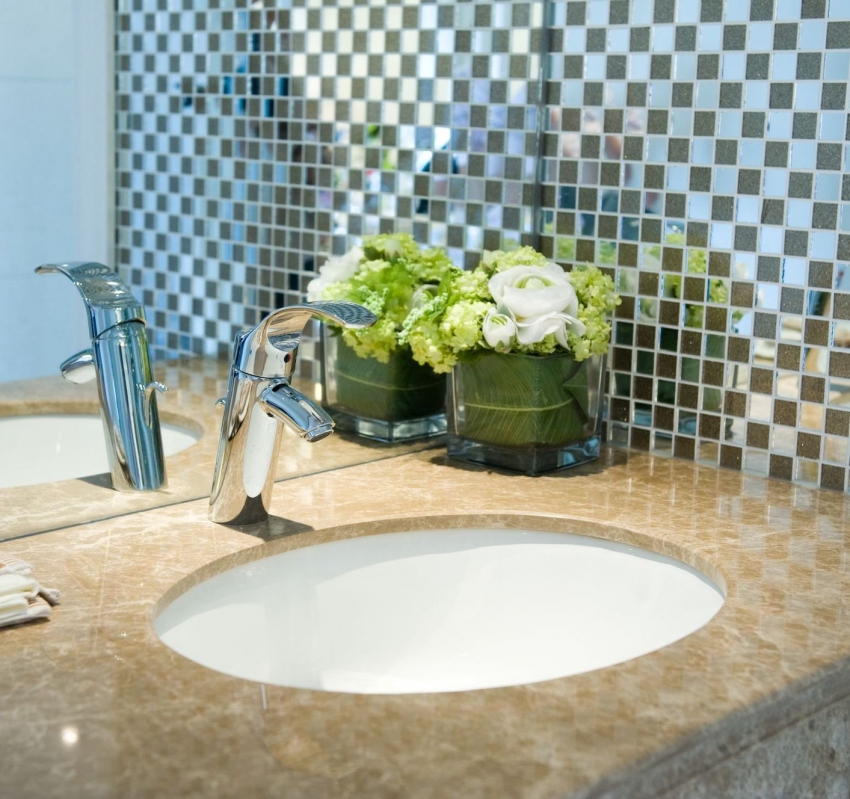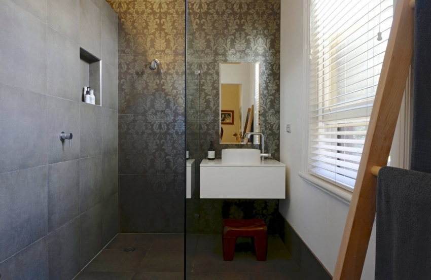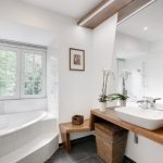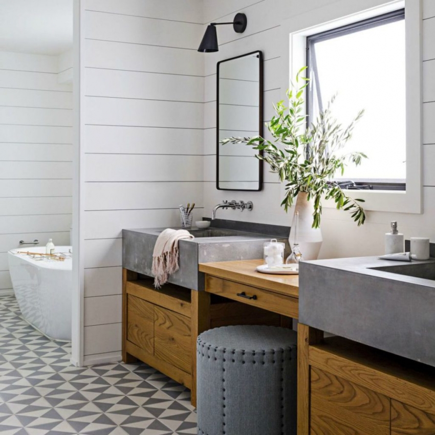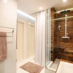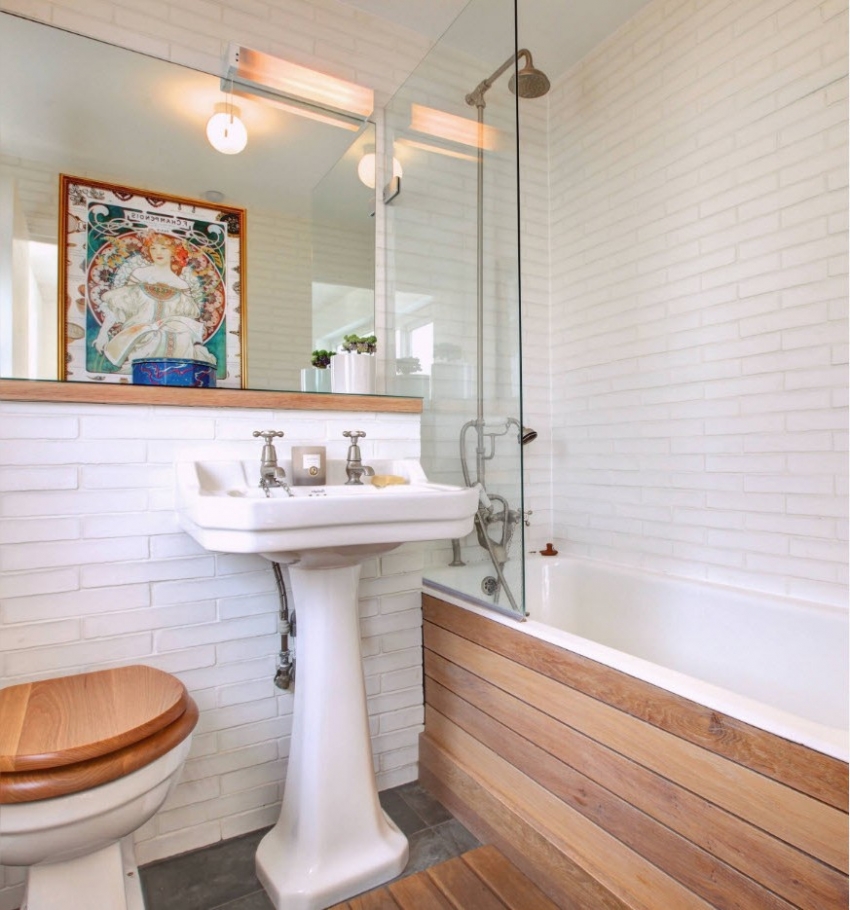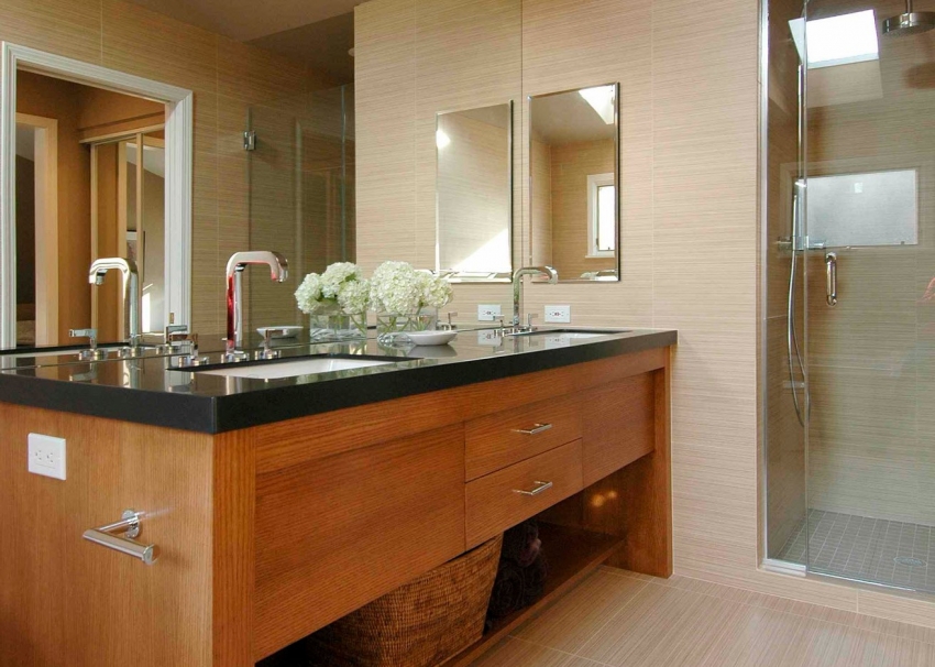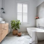 Una de las formas modernas de decorar un baño es utilizar azulejos con imitación de materiales naturales.