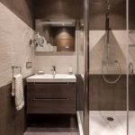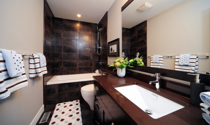 - un piso oscuro es la mejor solución para un baño. En una superficie así, la suciedad será menos visible, y si también compra una lechada especial que sea inmune a los escombros, esto facilitará aún más la tarea de limpieza. La solución clásica es la elección de baldosas beige o marrones, ya que dicho piso se verá bien en casi cualquier interior;
