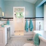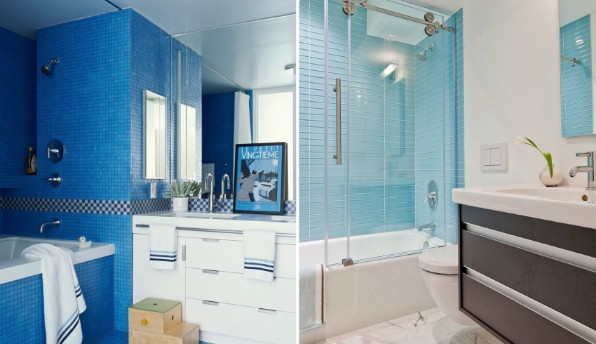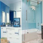 - para las paredes, los colores más claros son más adecuados, lo que no sobrecargará el aspecto. Una solución tradicional y muy exitosa es el uso de varios tonos del mismo color. En este caso, el azulejo más claro se coloca en el medio y las capas superior e inferior tienen un tono ligeramente más oscuro. Exactamente cómo debería verse, puede ver en la foto de terminar el baño con azulejos usando este método.