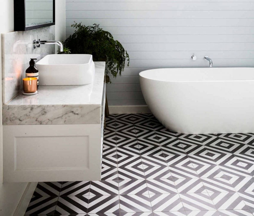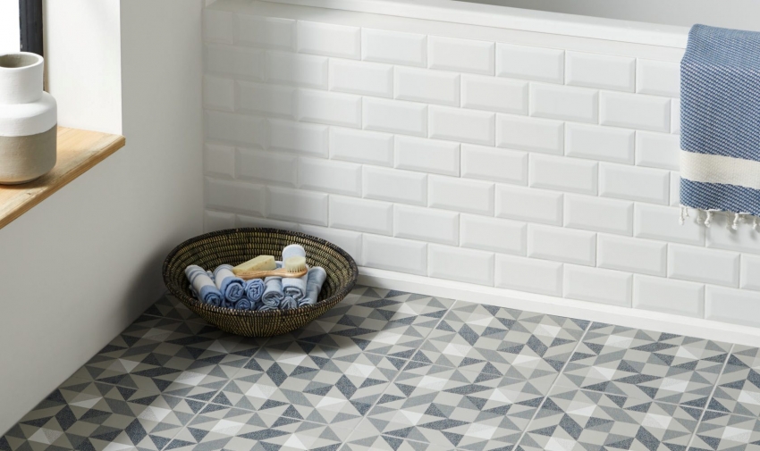 Cuando utilice baldosas con un patrón geométrico repetido, calcule cuidadosamente la cantidad de material necesario antes de comprar para evitar restos poco atractivos cerca de la pared o el techo.