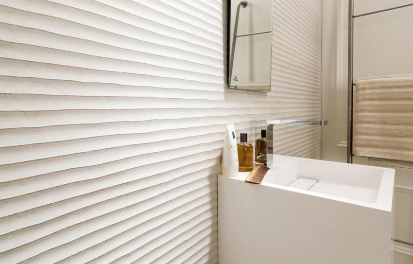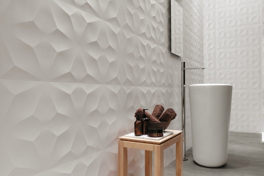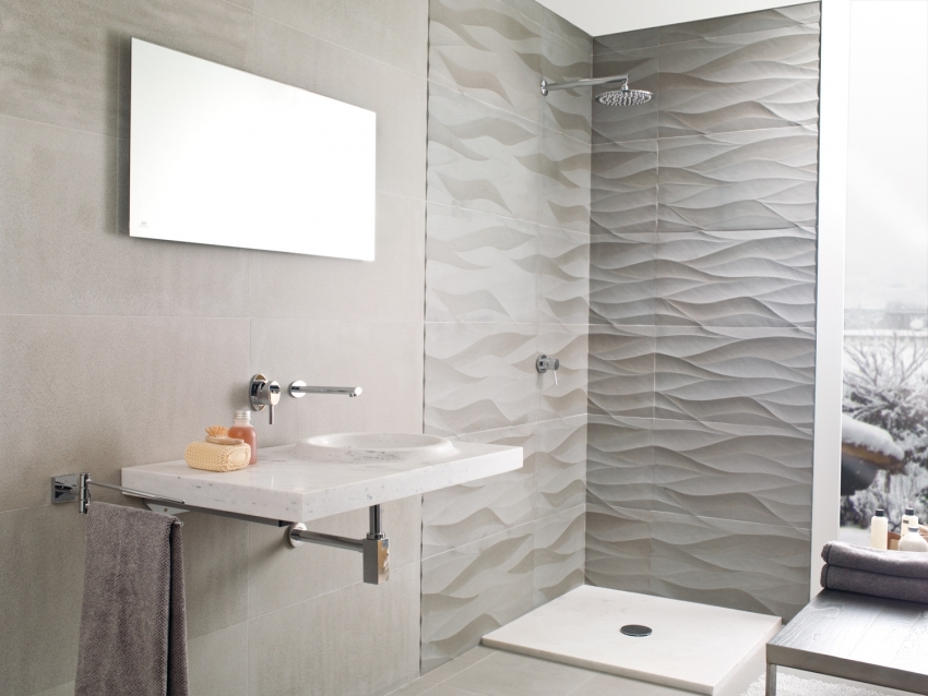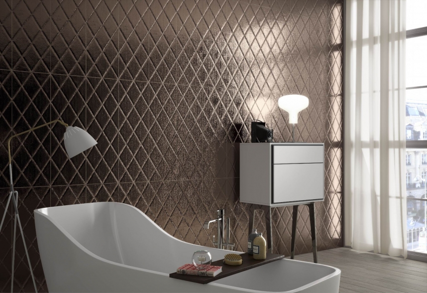 Gracias a la superficie en relieve de las baldosas, se puede dar al interior una sofisticación y un ambiente especiales. Puede, por ejemplo, elegir para las paredes azulejos con un relieve de líneas onduladas o rombos. Y puedes combinar estos efectos para lograr un resultado aún más interesante.