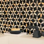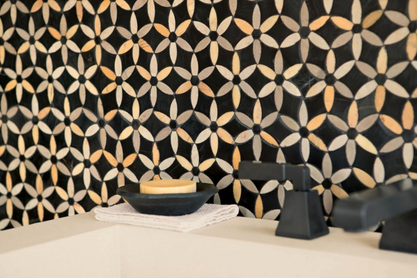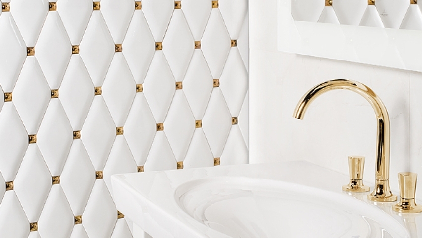 Azulejos finamente estampados o moldeados mosaicos combina bien con accesorios de oro y elementos decorativos de bronce