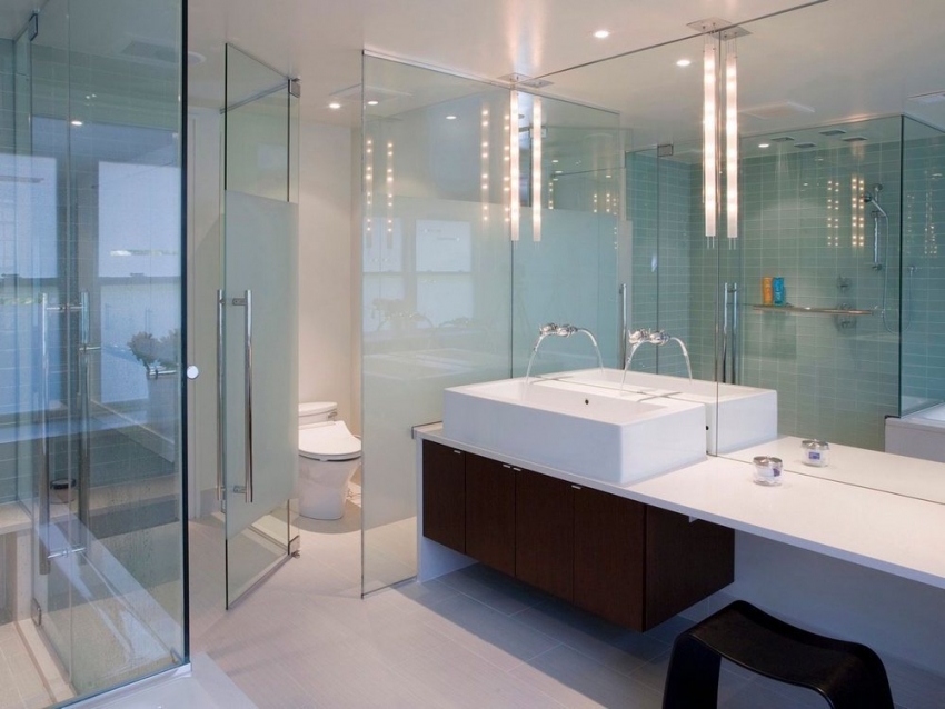 ¡Aviso util! A pesar del efecto positivo que pueden tener los azulejos de espejo en la percepción del espacio del baño, no conviene exagerar con este material. Si superpone todas las paredes y el techo con espejos, habrá demasiados reflejos, lo que creará un efecto de "jaula".