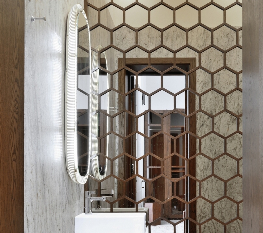 Las baldosas de espejo deben combinarse con otros materiales para no crear un efecto de "jaula" en la habitación.