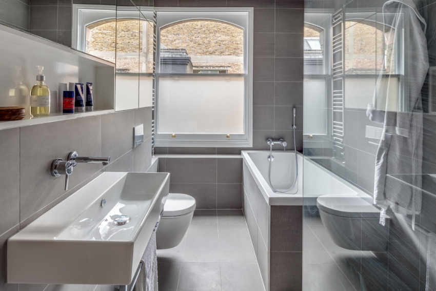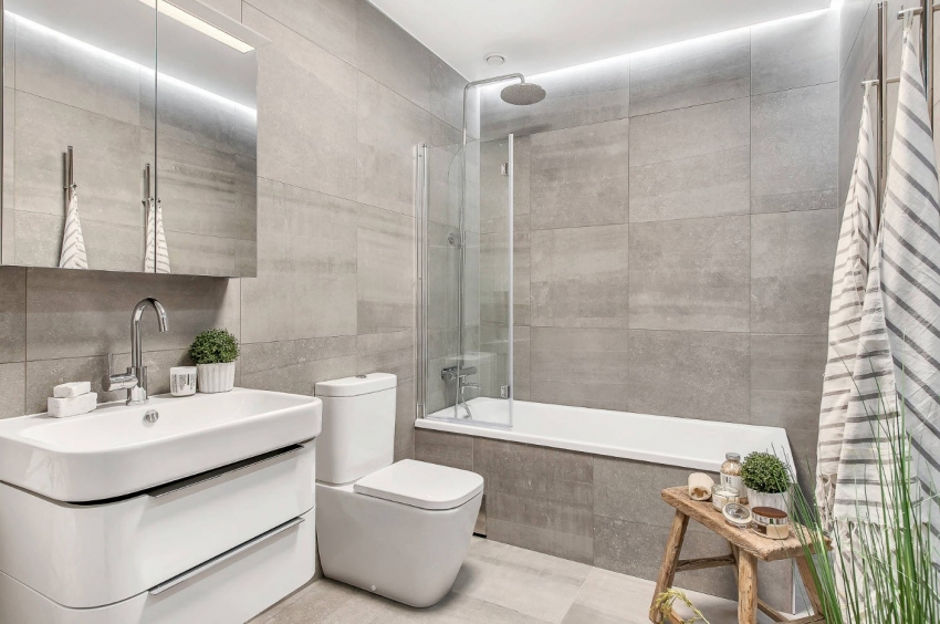 Al usar el gris para la decoración del baño, es importante elegir los tonos adecuados de muebles, accesorios y sanitarios.