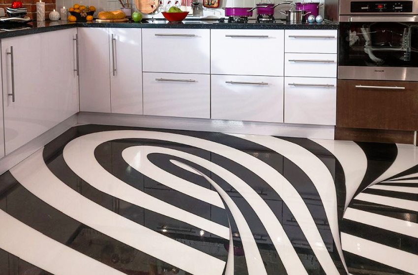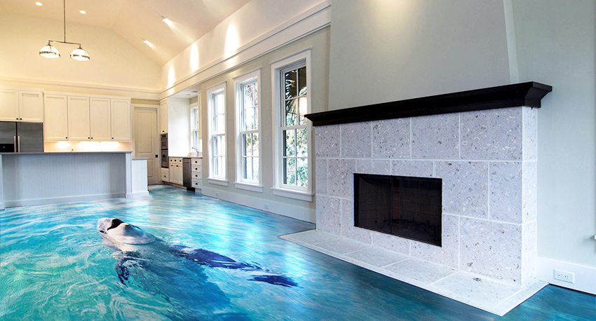 La imagen volumétrica en el piso es una excelente manera de darle a una habitación un aspecto elegante y original, para mostrar su talento de diseño y sorprender a todos los invitados. Puede hacer dicho recubrimiento con la ayuda de especialistas calificados, o puede hacerlo usted mismo. La segunda opción te llevará mucho más tiempo y esfuerzo, pero te permitirá poner cualquier imagen que quieras en el suelo. Por supuesto, el costo de los pisos 3D será mucho más alto de lo habitual, por un m² tendrá que pagar desde 5500 rublos. Pero las cualidades estéticas diferirán significativamente de una simple superficie lisa.