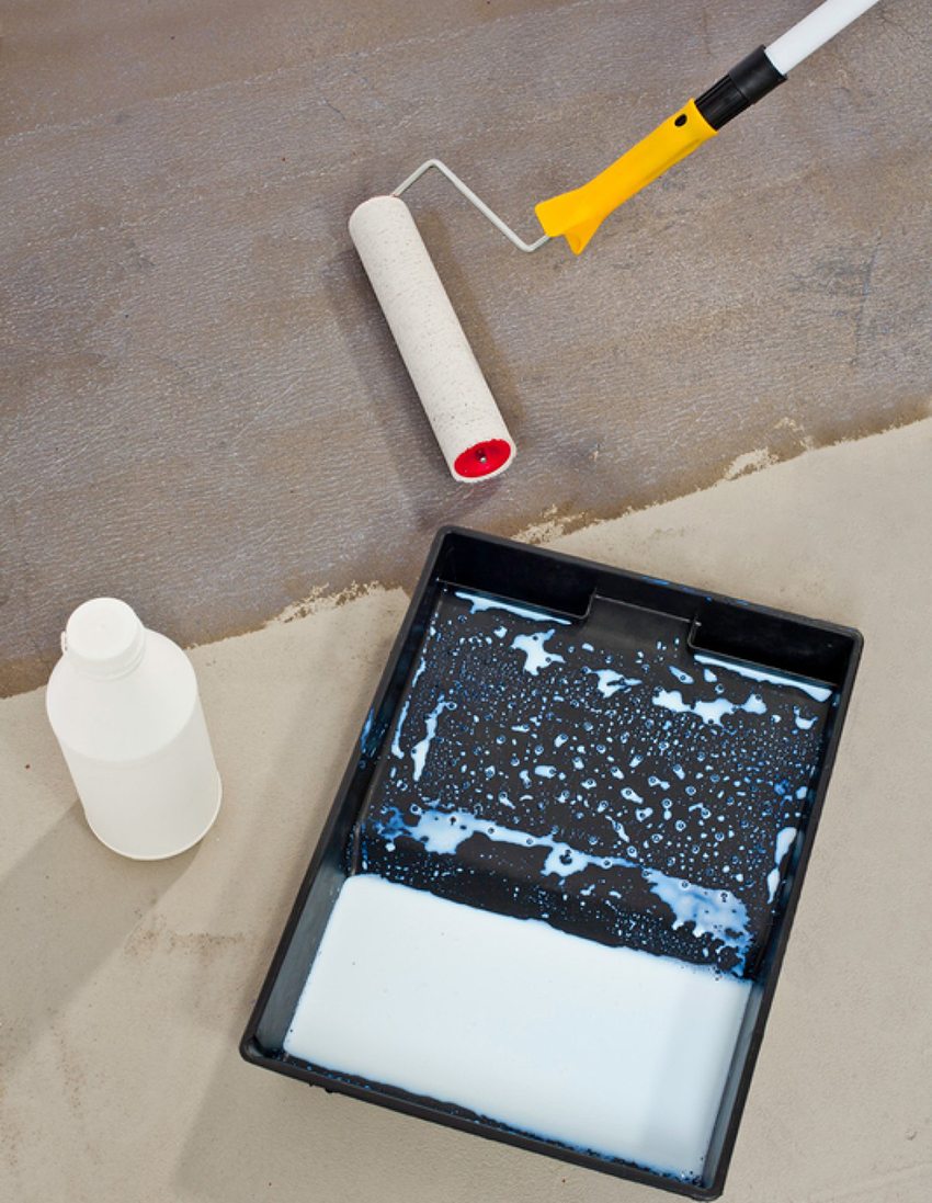 Si usa un recubrimiento autonivelante para verter, se esparcirá uniformemente sobre la superficie, por lo que no es necesario usar el rodillo. Pero es imperativo usar equipo de protección personal, ya que se pueden incluir químicos agresivos en la mezcla.
