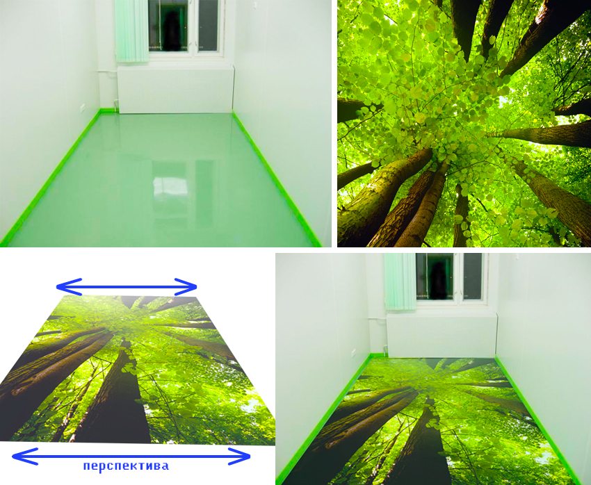 ¡Aviso util! Si no sabe cómo utilizar los editores gráficos, contrate a un diseñador para ello o utilice los servicios de amigos. El precio de una foto de un suelo autonivelante con una imagen volumétrica realizada de esta forma seguirá siendo más bajo que al contactar con una empresa especializada.
