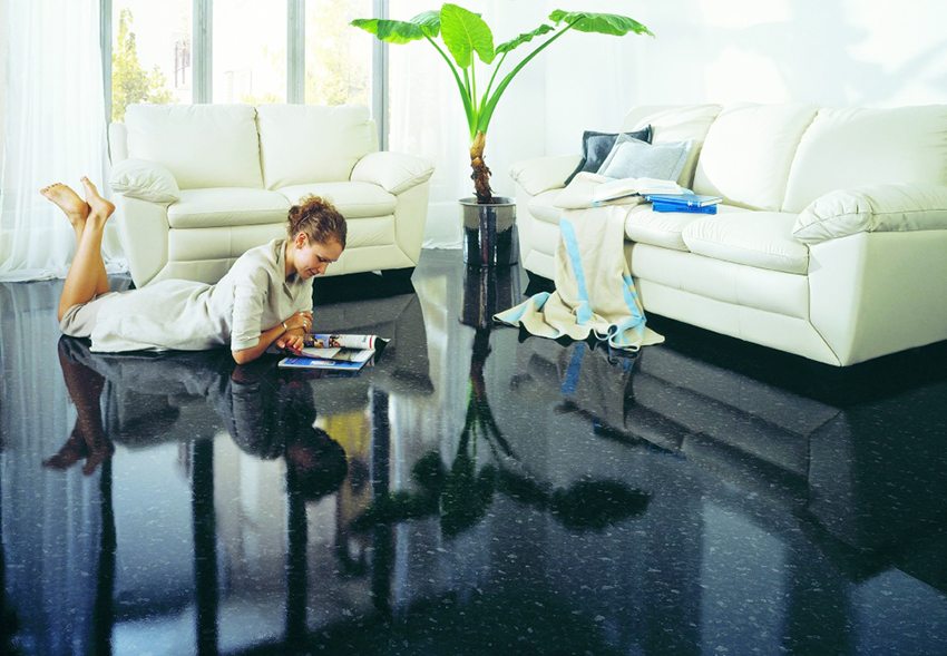 - epoxi - caracterizado por la resistencia a la alta humedad y resistencia a los golpes. Se usa con mayor frecuencia en espacios cerrados donde a menudo ocurren inundaciones o simplemente trabajando con agua. Si desea llenar el piso autonivelante con sus propias manos, se puede encontrar fácilmente un video con las instrucciones correspondientes en los sitios de construcción. Dicho revestimiento se limpia mediante un lavado automático o manual;