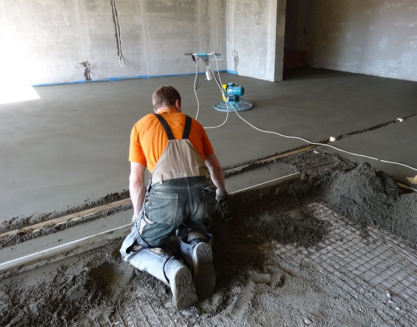 Una regla de piso semiseco, cuyos pros y contras dependen de la instalación correcta, requiere una preparación cuidadosa de la base. Las losas del piso se inspeccionan cuidadosamente y se eliminan todas las áreas que se descascaran. Las grietas y juntas con las paredes se limpian a fondo y se recubren con mortero de cemento. Elimina todo rastro de pintura y grasa. Después de eso, se aspira toda la superficie de los pisos sin dejar una sola mota de polvo.