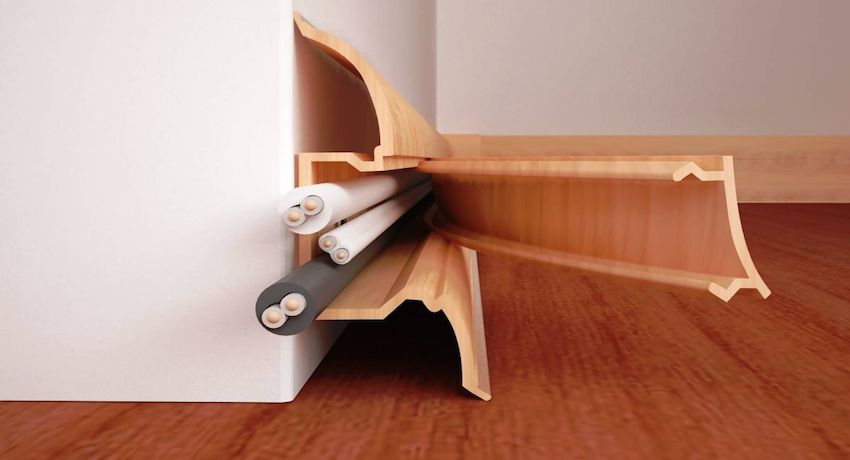 El zócalo de plástico para piso ancho es un excelente disfraz de la fea unión entre el piso y la pared. Actualmente, no es solo un elemento interior, sino también un detalle funcional que permite ocultar varios alambres y cables.