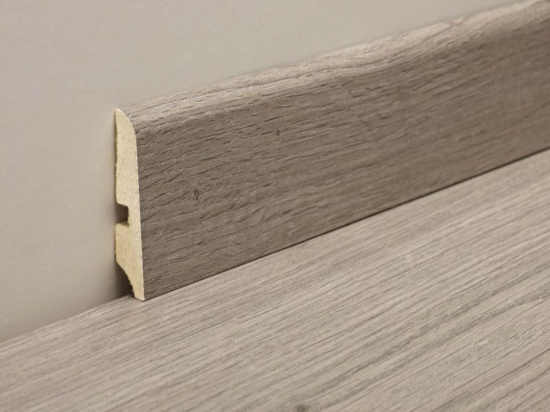 El MDF es una fibra de celulosa encolada y comprimida. Las molduras de piso hechas de este material se distinguen por una amplia variedad de colores y texturas. Los fabricantes están listos para ofrecer rodapiés de MDF de piso ancho para madera, piedra o incluso cuero. Si aún no puede encontrar la opción correcta entre la gran variedad, puede detenerse en un zócalo blanco común, que luego se pinta para que coincida con el color del interior.