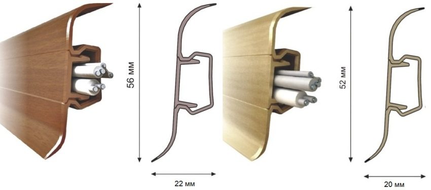 La longitud estándar de un producto de este tipo es de 2,5 m, pero el grosor y el ancho pueden ser diferentes. En el mercado de la construcción, existen modelos con un espesor de 15-22 mm. El ancho del zócalo se selecciona en función de las dimensiones de la habitación y la necesidad de encontrar canales para cables en ella.