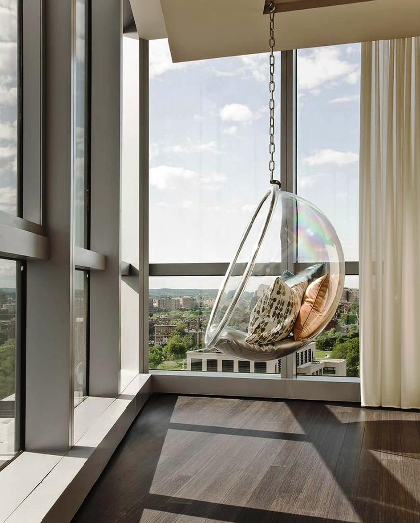 - Excesiva apertura. Si el balcón está ubicado en la planta baja y está hecho de vidrio transparente, los transeúntes podrán ver fácilmente lo que sucede en el interior, especialmente en la oscuridad.