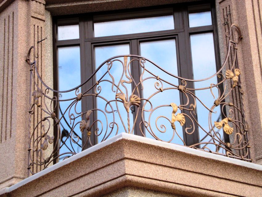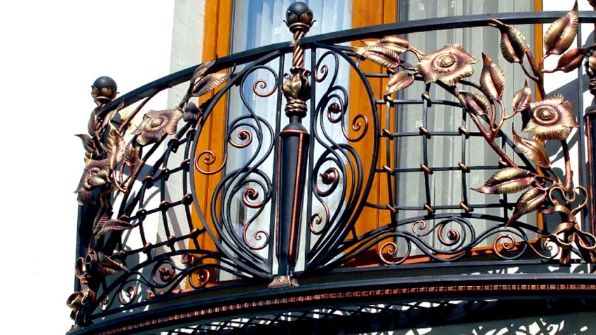 - Belleza y originalidad. La combinación de metal con varios materiales de acabado le permite crear verdaderas obras de arte de forja, decorando el balcón y la fachada del edificio.