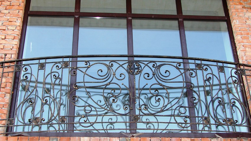 - Solidez. Un balcón forjado con acristalamiento relativamente simple se ve elegante y respetable, enfatizando el gusto original del propietario, y el trabajo hecho a mano le da exclusividad e individualidad al diseño.