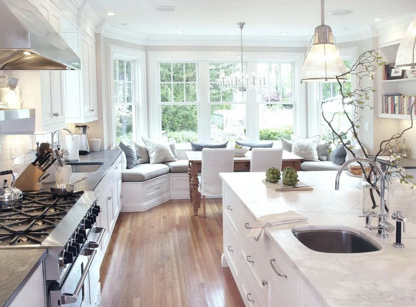 Los clásicos en el interior de la cocina se reflejan en textiles ligeros y elegantes líneas de muebles y decoración.