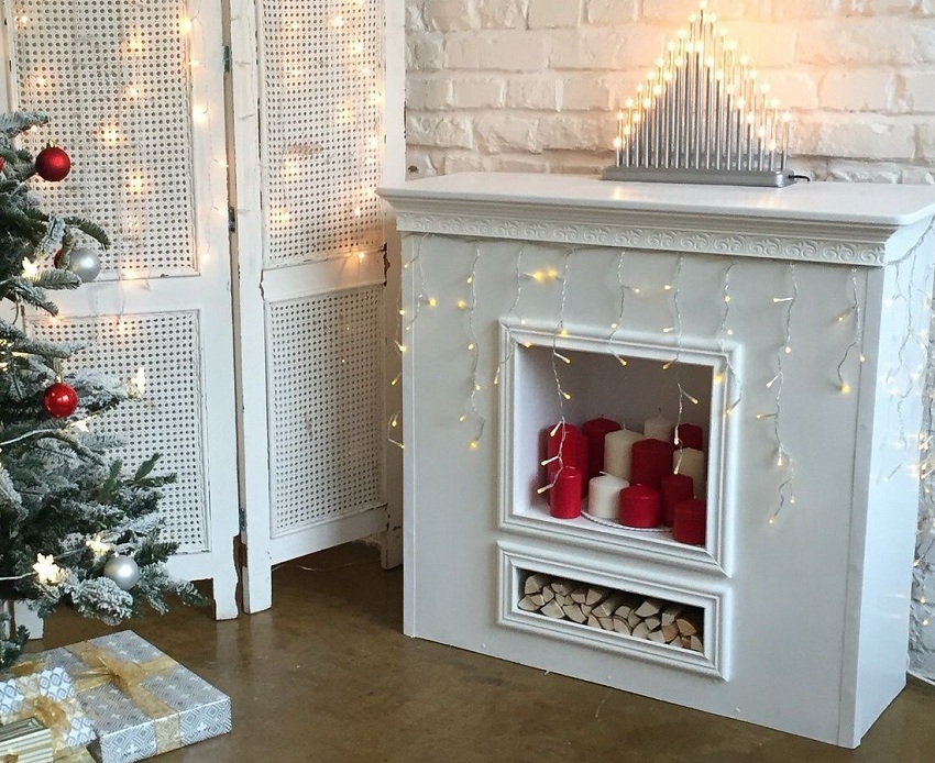 La chimenea decorativa casera se puede decorar a su gusto y de acuerdo con el estilo general del interior.