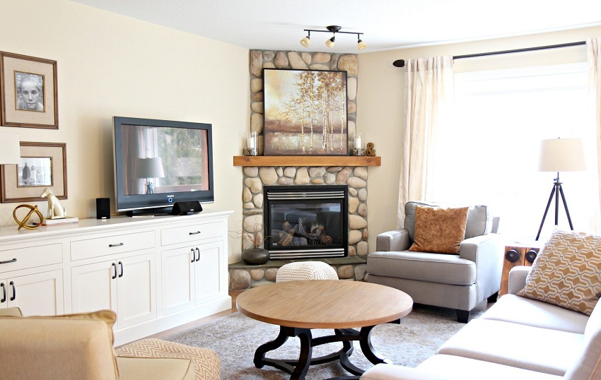 - instalar una chimenea falsa en la esquina no crea obstáculos para moverse por la habitación;