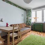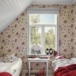 Los expertos no recomiendan utilizar acabados con patrones claros que se repitan en todas las paredes. Si no puede evitar una solución de este tipo, solo puede recurrir a ella parcialmente. En este caso, el papel pintado se pega solo a una de las paredes, mientras que el resto de superficies están decoradas con colores más tranquilos.