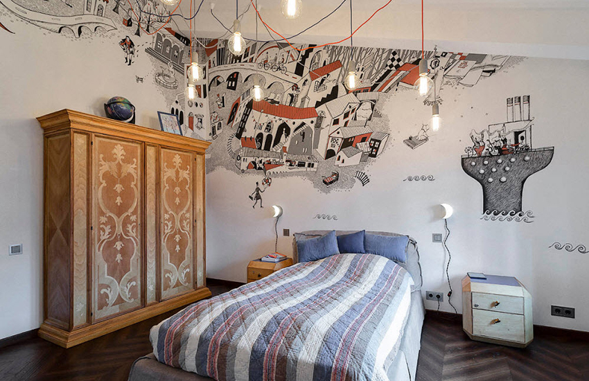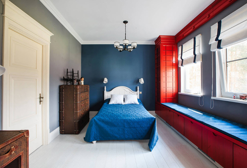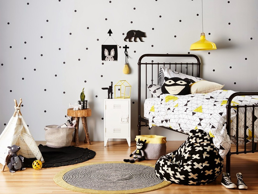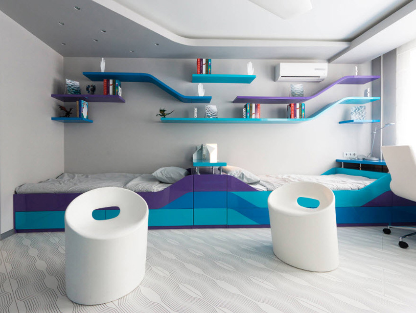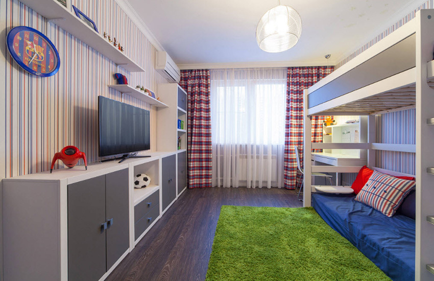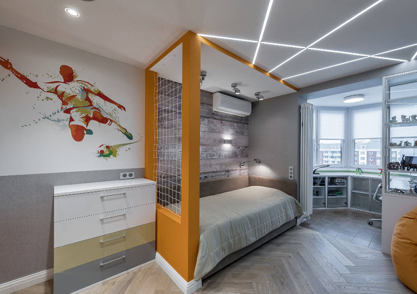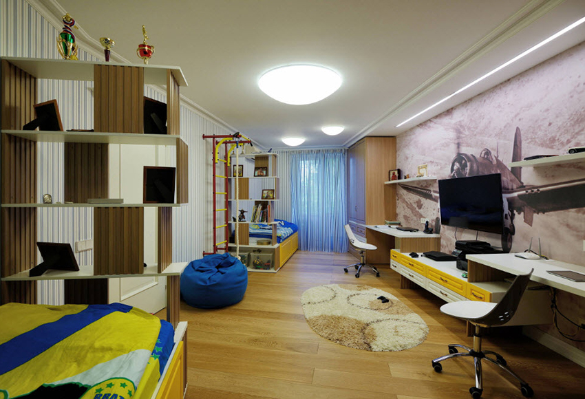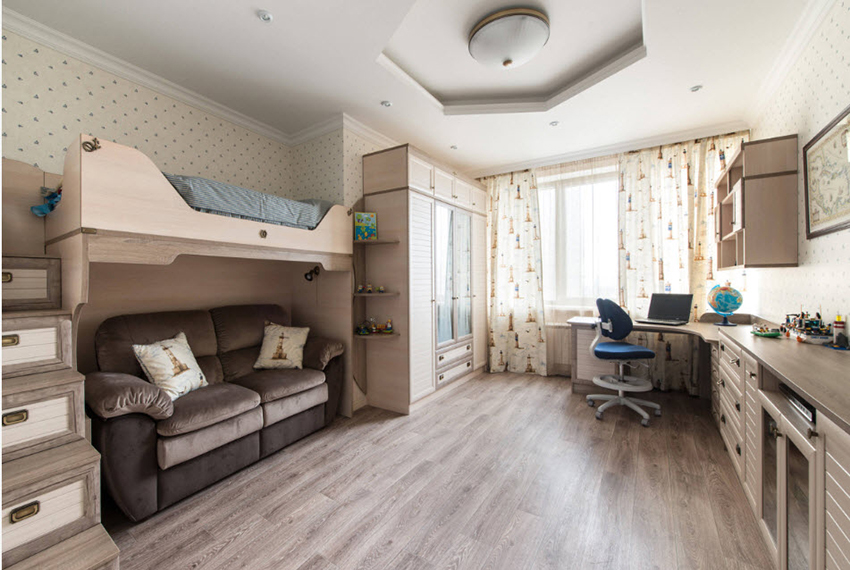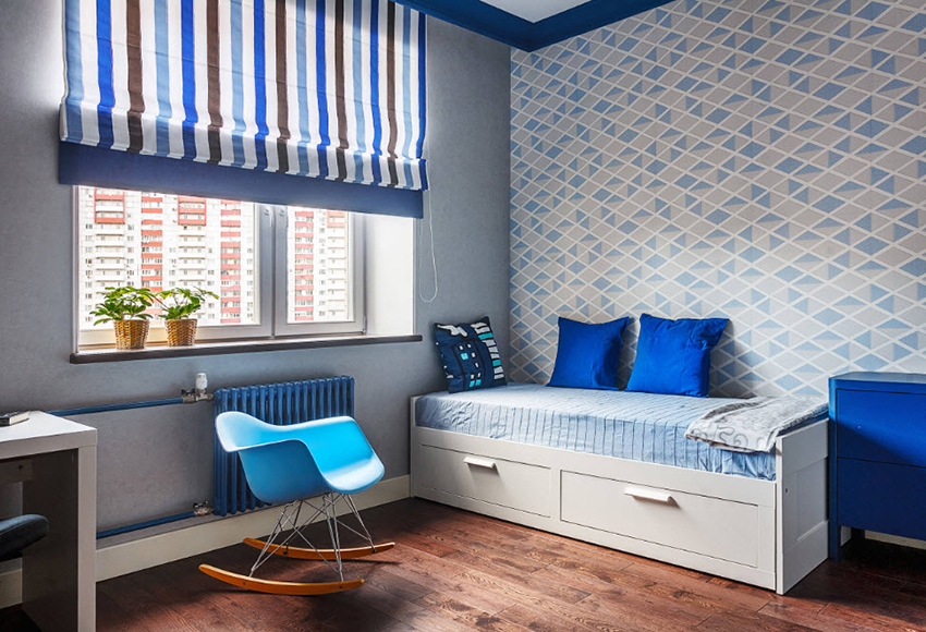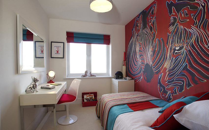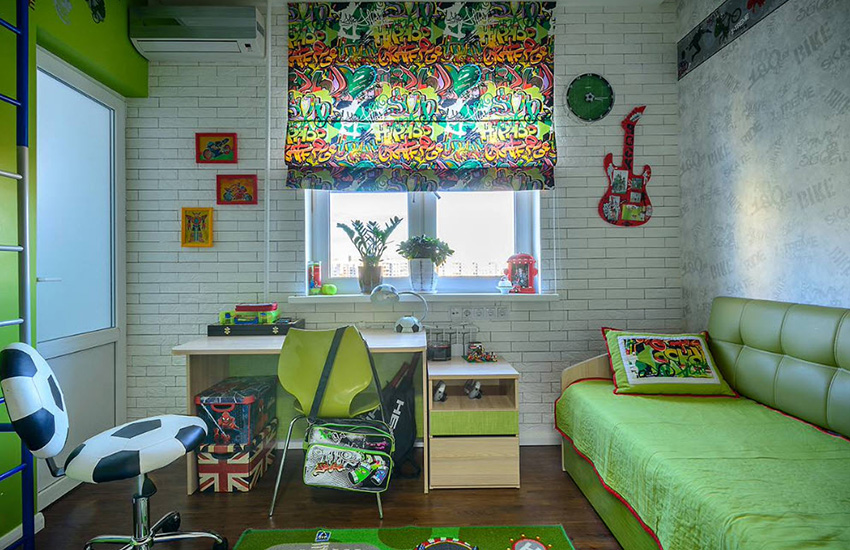 Esta regla se aplica no solo al diseño de una habitación infantil para un niño, sino que un adolescente tampoco se sentirá cómodo en una habitación estampada.