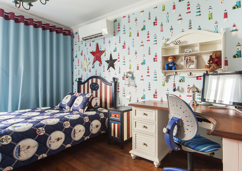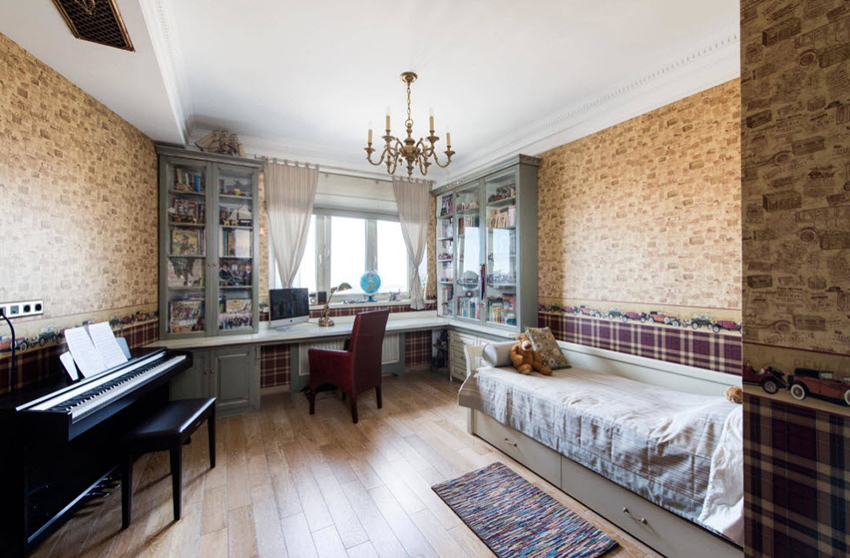 A esta edad, no está de más llevar al niño a la tienda para que pueda participar en la elección del papel tapiz para su habitación. Los niños de 8 a 10 años ya pueden tener su propia opinión no solo sobre el dibujo, sino también sobre los colores. Si, a esta edad, le brinda al niño la oportunidad de elegir de forma independiente la decoración de su propio dormitorio, esto afectará positivamente su autoestima y también engendrará en él los rudimentos de la responsabilidad.