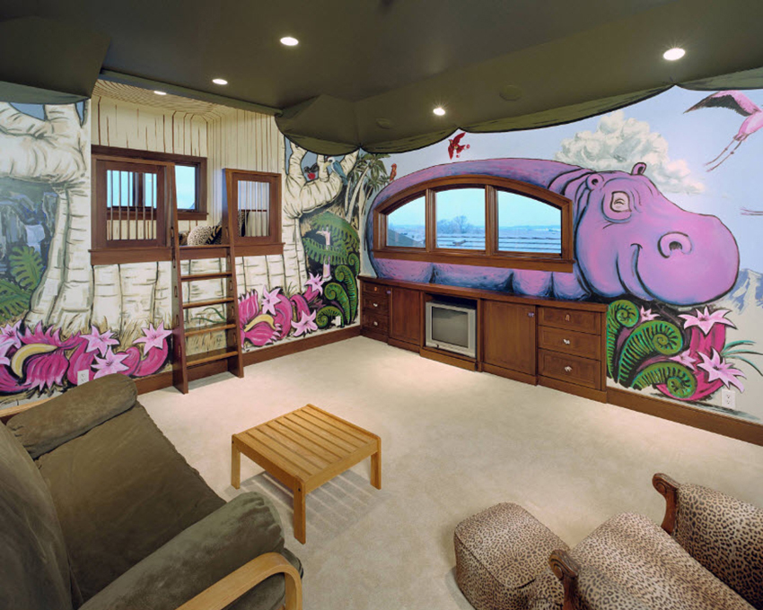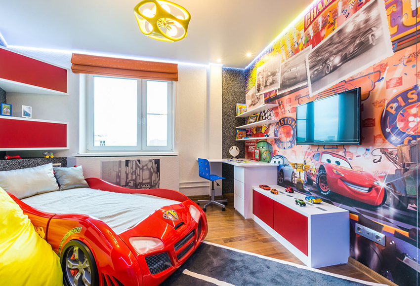 El uso de materiales con impresión fotográfica o papel tapiz fotográfico en una habitación infantil para un niño permite lograr los efectos necesarios, por ejemplo, para resaltar acentos o zonificar un espacio. Dicha decoración facilita enormemente el proceso de creación de un tema holístico de la habitación, dándole un cierto estilo. Usando imágenes de los personajes favoritos de su hijo, puede crear un mundo de cuento de hadas especial para él.