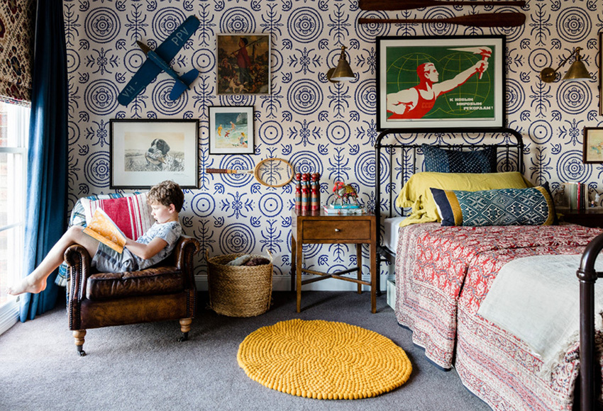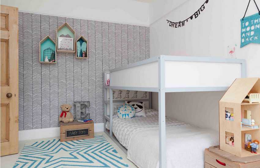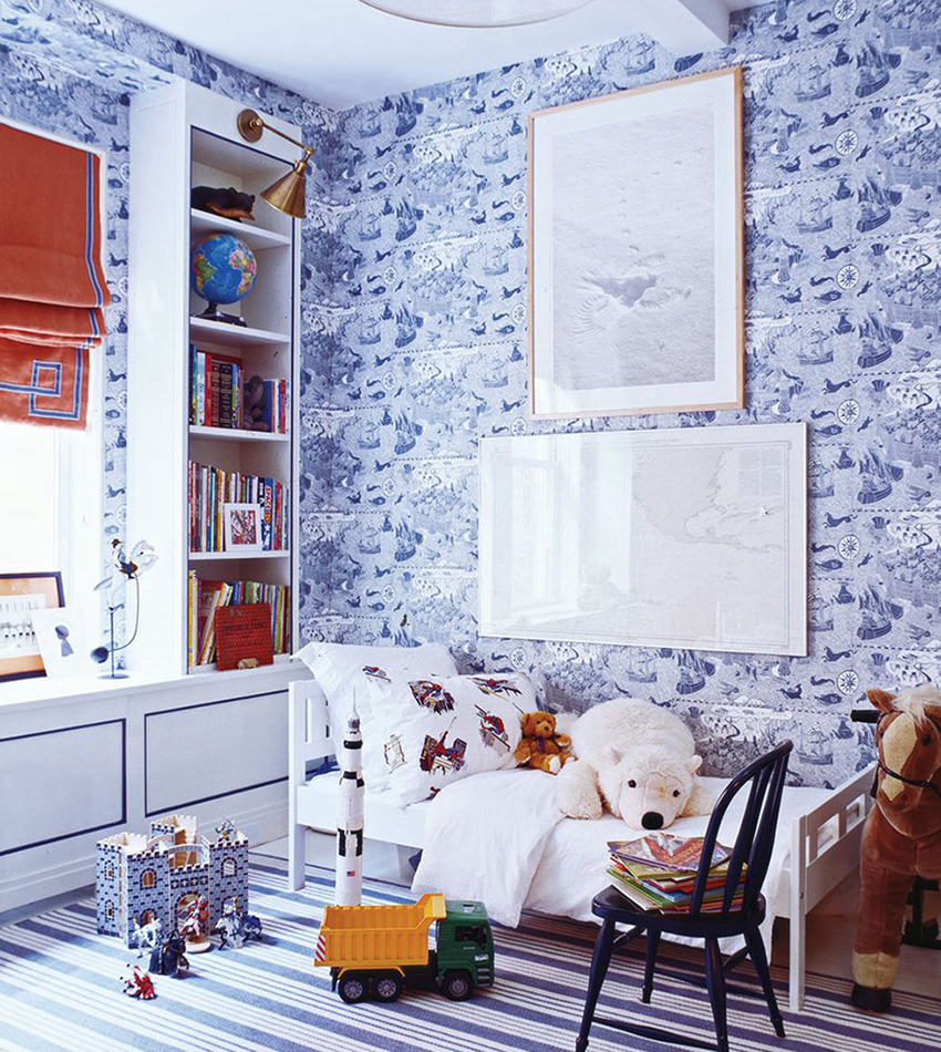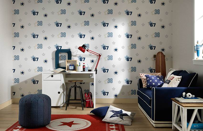 ¿Cuál puede ser el diseño de papel tapiz en una habitación infantil para un niño?
