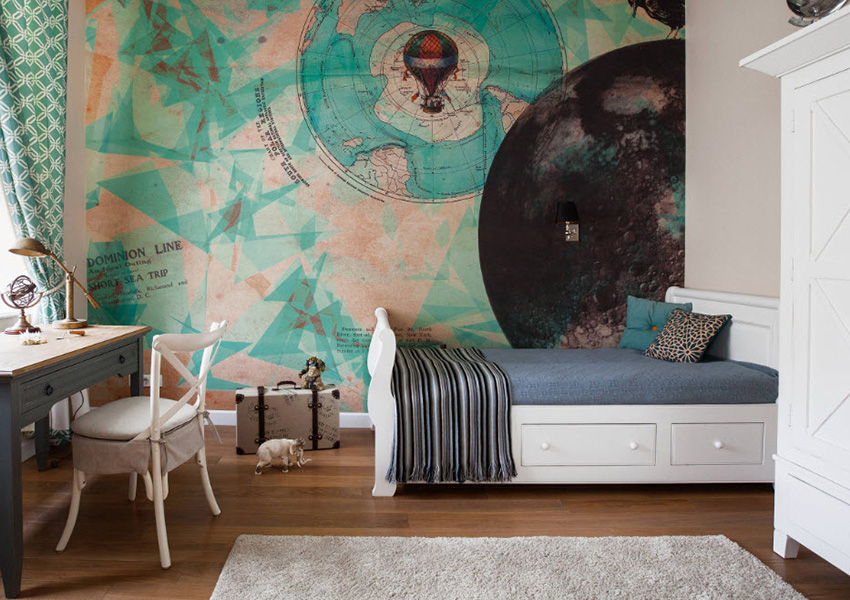 La elección del papel tapiz fotográfico de diseño para una habitación infantil para un niño de 8 a 12 años.