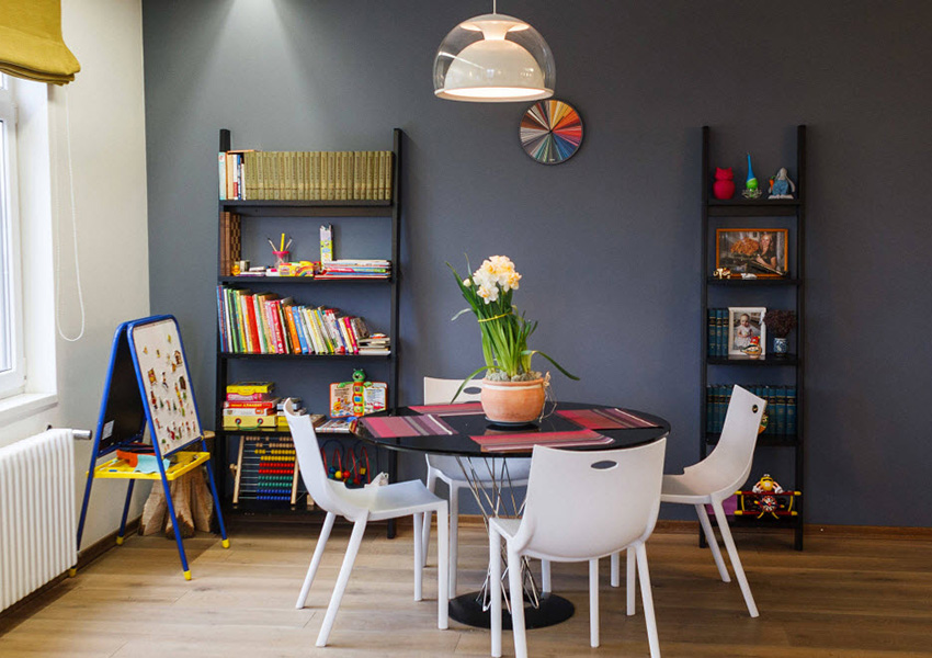 A menudo sucede que los padres se niegan por completo a usar negro. Sin embargo, la gama oscura tiene sus ventajas. Las paredes, decoradas en tonos negros, dan tranquilidad y ánimo para el relax. Se cree que este color aumenta la presión arterial y también reduce el riesgo de resfriados. Pero debe usar un tono negro con moderación para no sobrecargar la psique del niño.