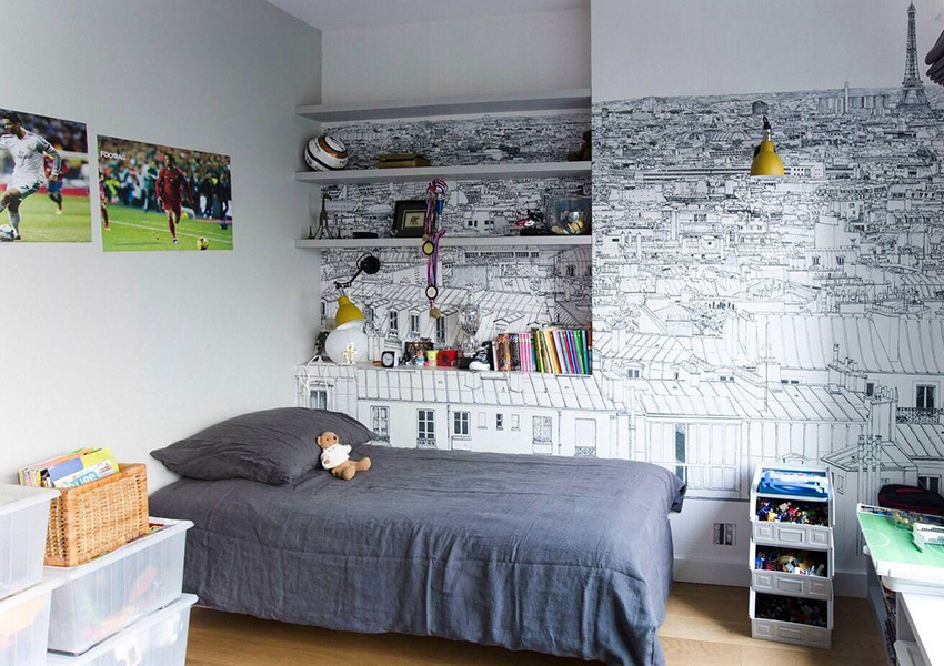 - 3.3 La elección del papel tapiz fotográfico de diseño para una habitación infantil para un niño de 8 a 12 años.